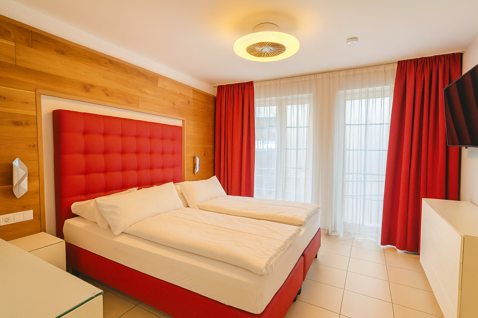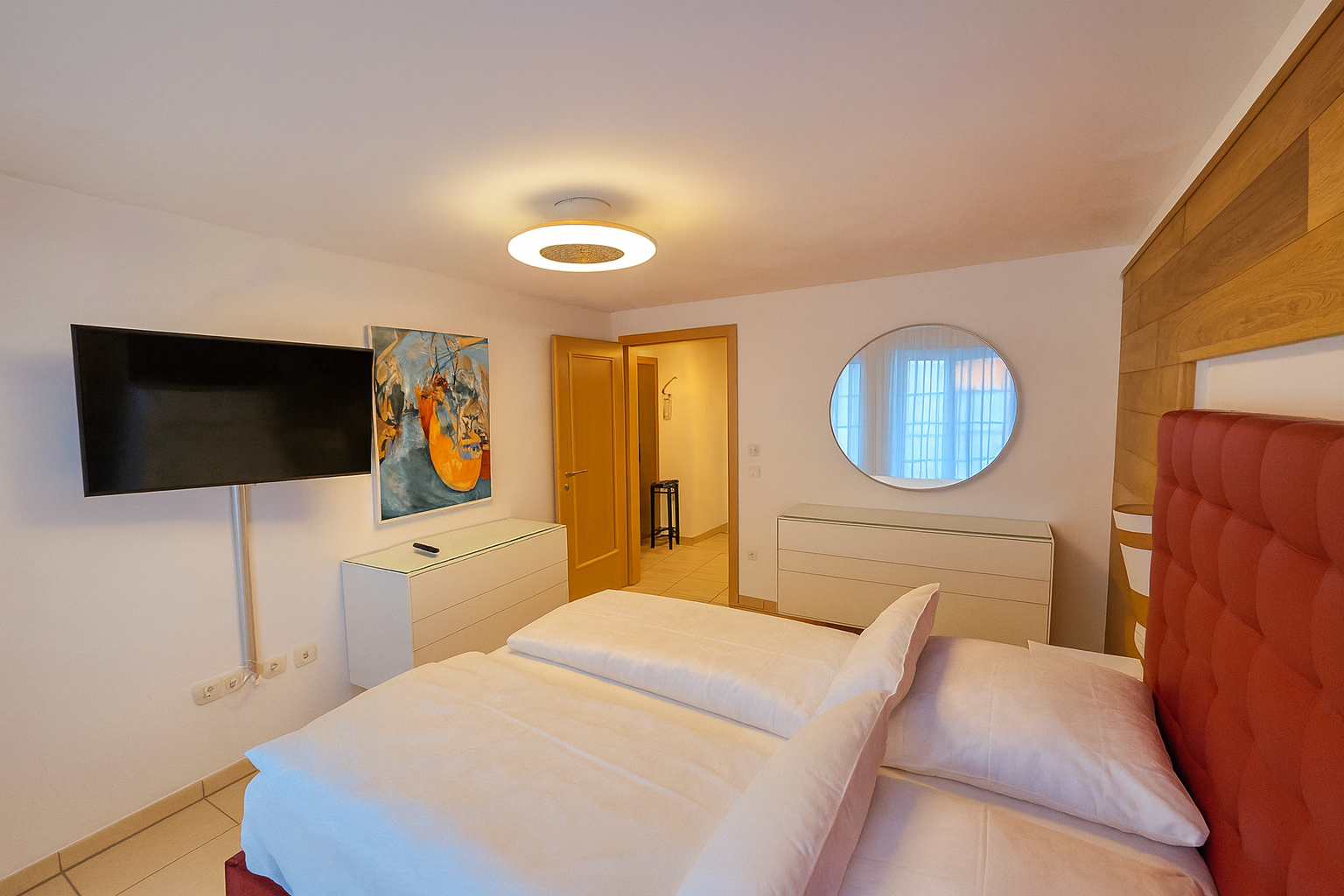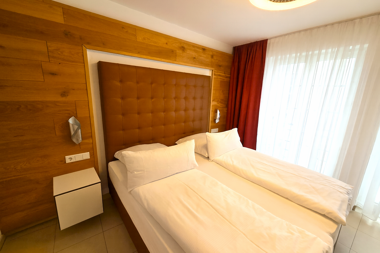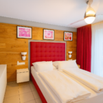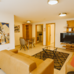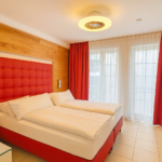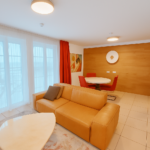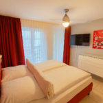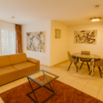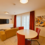 Das 55 m² große Apartment bietet ein separates Schlafzimmer, ein stilvoll eingerichtetes Wohnzimmer, eine voll ausgestattete Küche sowie ein großes, komfortables Bad. Der private Balkon erweitert den Wohnraum nach draußen und lädt zum entspannten Verweilen ein. Ein hochwertiges Wohnambiente – perfekt für zwei Personen.