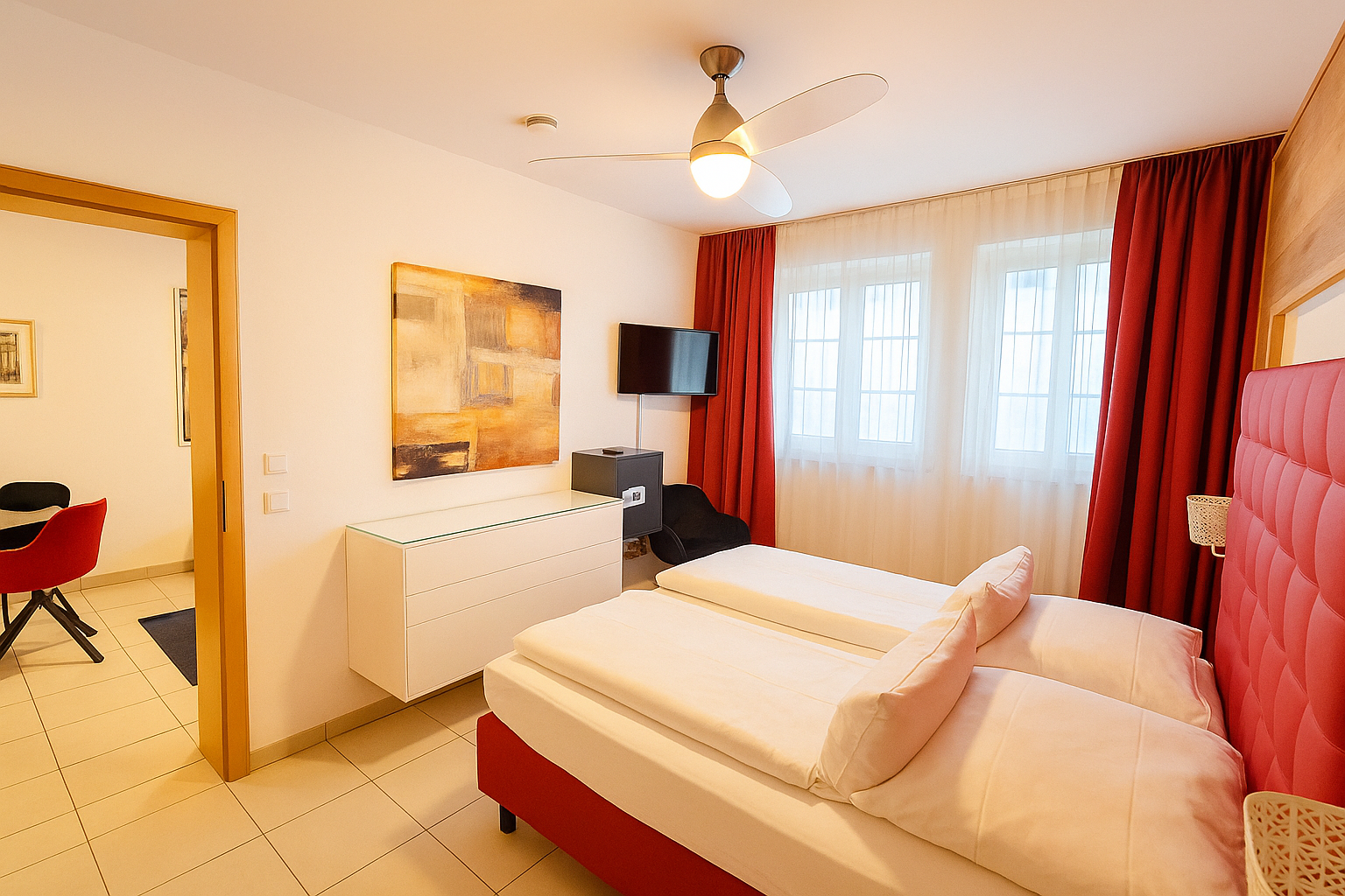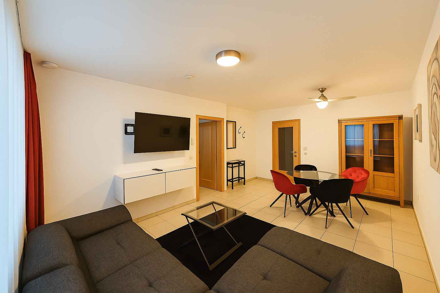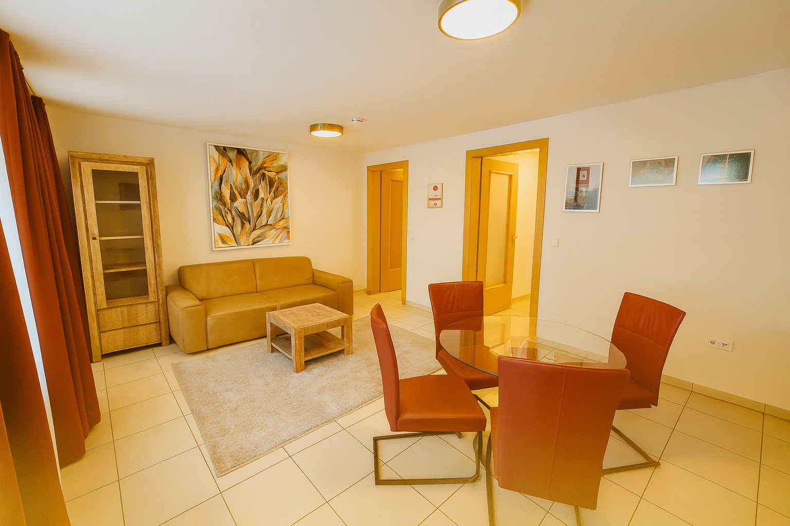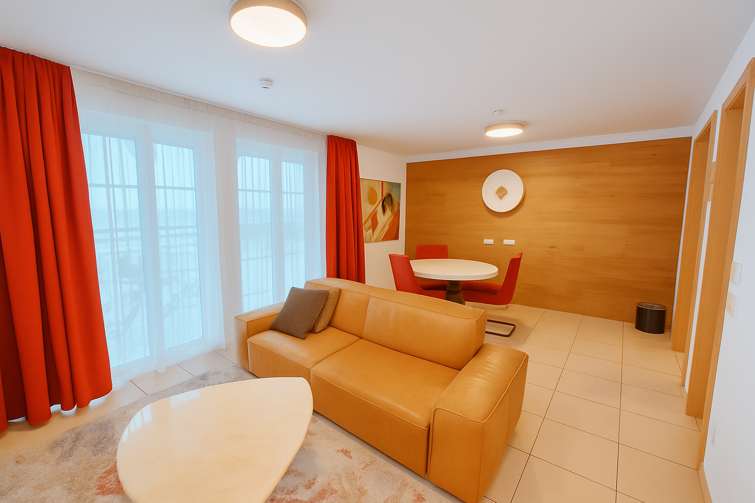 Auf 55 m² Wohnfläche bietet dieses Apartment ein separates Schlafzimmer, ein stilvoll gestaltetes Wohnzimmer, eine komplett ausgestattete Küche sowie ein großzügiges Bad. Die harmonische Raumaufteilung schafft ein angenehm wohnliches Ambiente – ideal für zwei Personen.