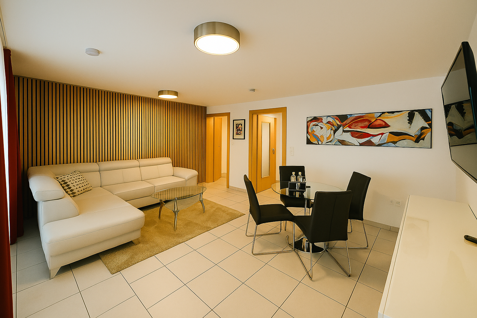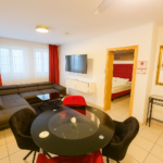 Das Apartment umfasst ein separates Schlafzimmer, ein gemütlich eingerichtetes Wohnzimmer, eine voll ausgestattete Küche sowie ein großes, komfortables Bad. Auf 50 m² bietet es ein durchdachtes Raumkonzept mit viel Komfort – ideal für zwei Personen, die einen entspannten Aufenthalt in Ingolstadt genießen möchten.