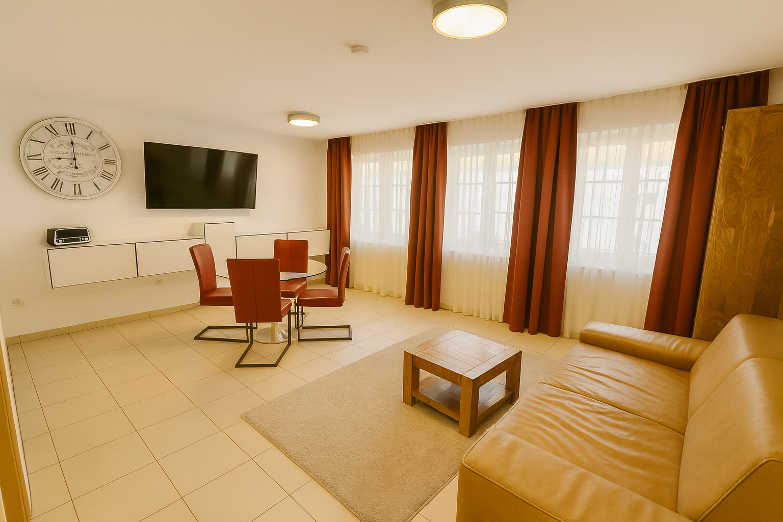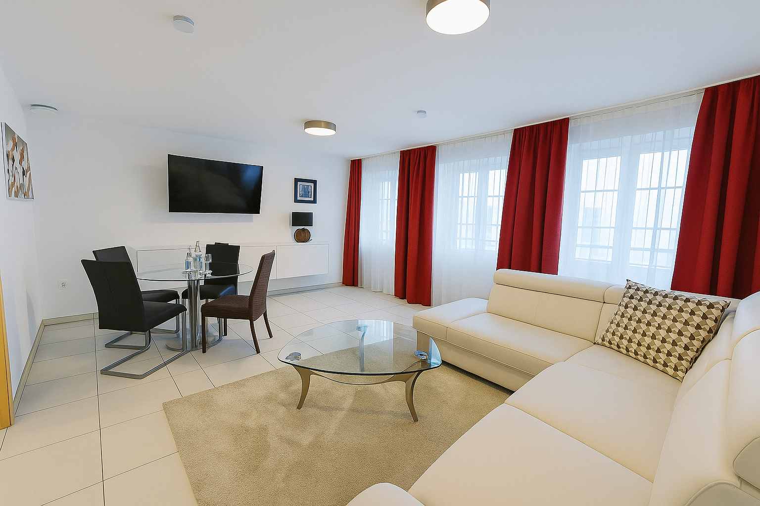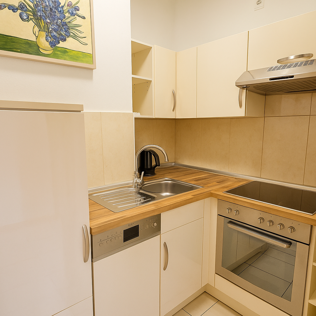 Da wir in unsere Apartments täglich modernisieren und renovieren, können die gezeigten Bilder vereinzelt vom aktuellen Zustand abweichen. Wir bitten um Verständnis, die Fotos spiegeln jedoch Größe und Schnitt der Apartments zuverlässig wider.