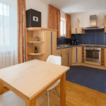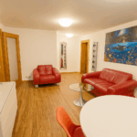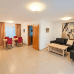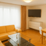 Auf 70 m² Wohnfläche erwartet Sie ein Apartment mit separatem Schlafzimmer, einem stilvoll eingerichteten Wohnzimmer, einer voll ausgestatteten Küche und einem modernen Bad. Dank der clever geplanten Raumaufteilung entsteht ein helles und einladendes Ambiente – perfekt für zwei Personen, die Wert auf Komfort legen.