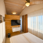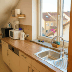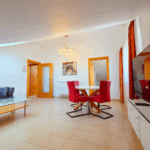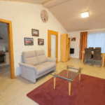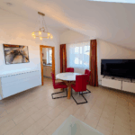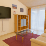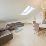 Diese 60 m² große Dachgeschosswohnung bietet ein Schlafzimmer, ein großzügiges Wohnzimmer, eine voll ausgestattete Küche und ein modernes Bad. Die offene Raumgestaltung sorgt für ein komfortables Wohngefühl, und dank moderner Dämmung sowie effizienter Temperaturregelung bleibt die Wohnung auch an warmen Tagen angenehm kühl – ideal für zwei Personen.
