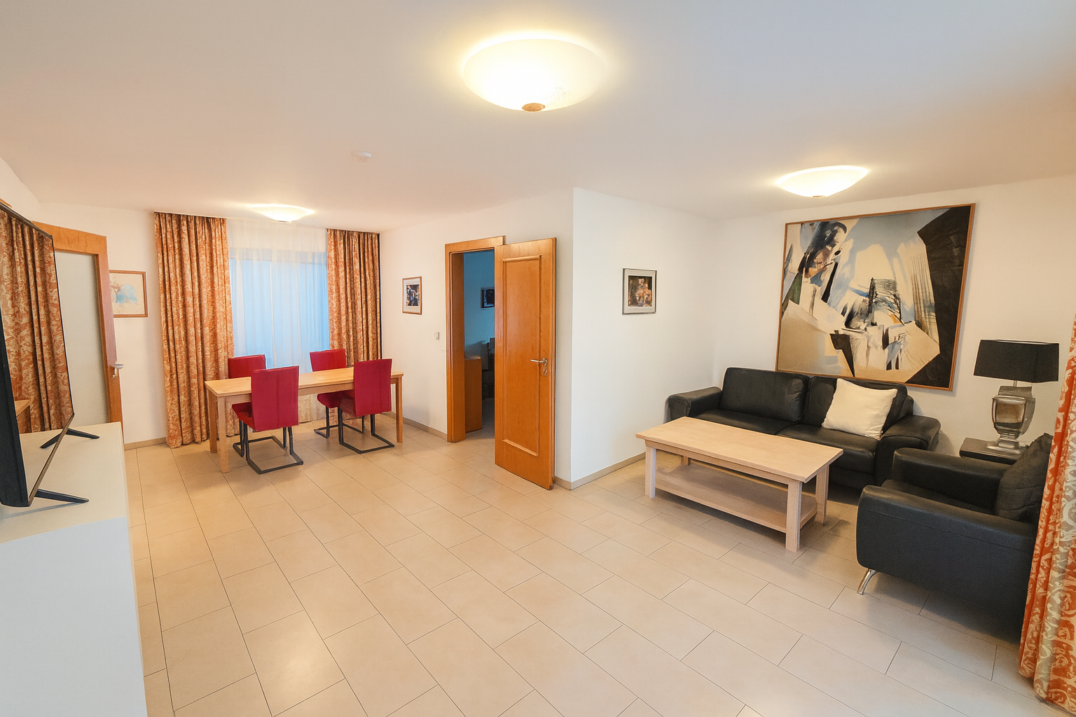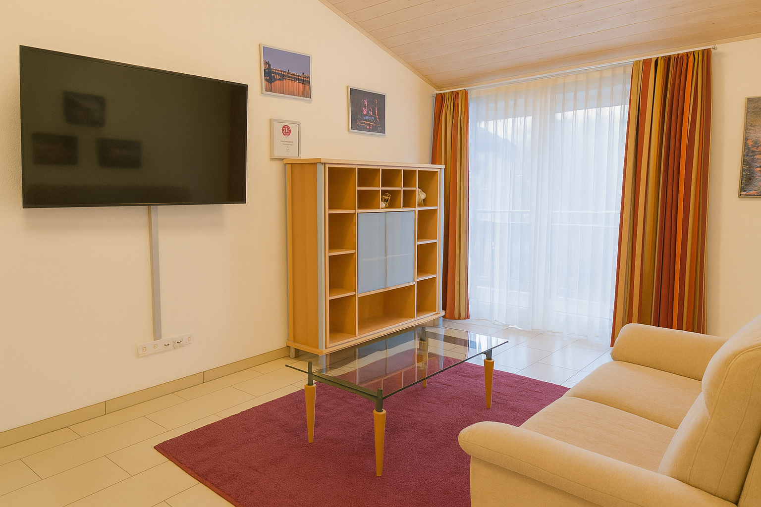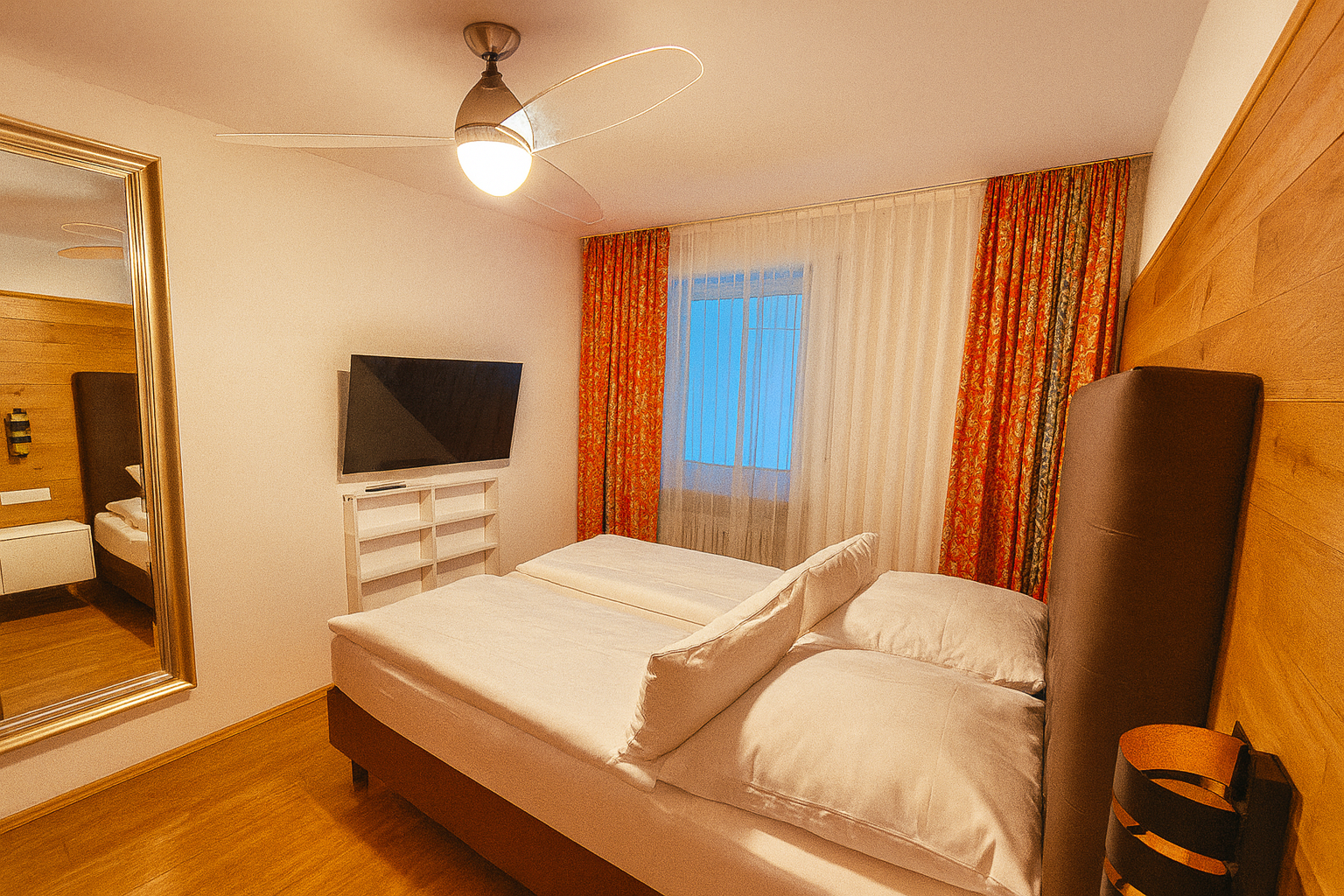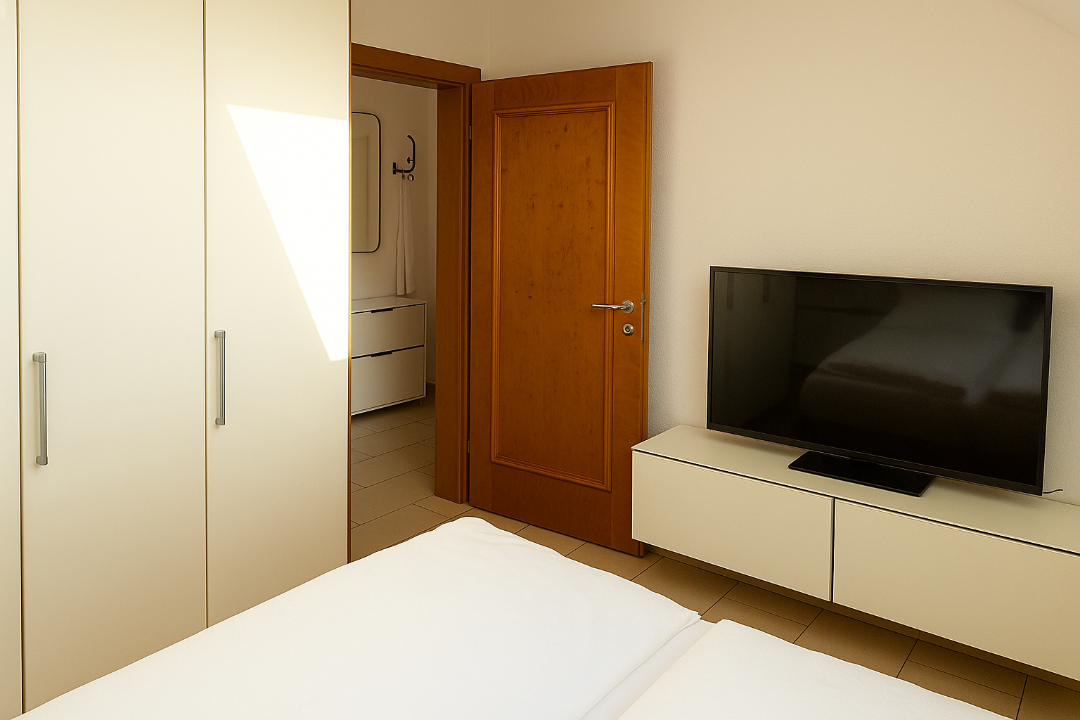 Auf 70 m² Wohnfläche erwartet Sie ein Apartment mit separatem Schlafzimmer, einem stilvoll eingerichteten Wohnzimmer, einer voll ausgestatteten Küche und einem modernen Bad. Dank der clever geplanten Raumaufteilung entsteht ein helles und einladendes Ambiente – perfekt für zwei Personen, die Wert auf Komfort legen.
