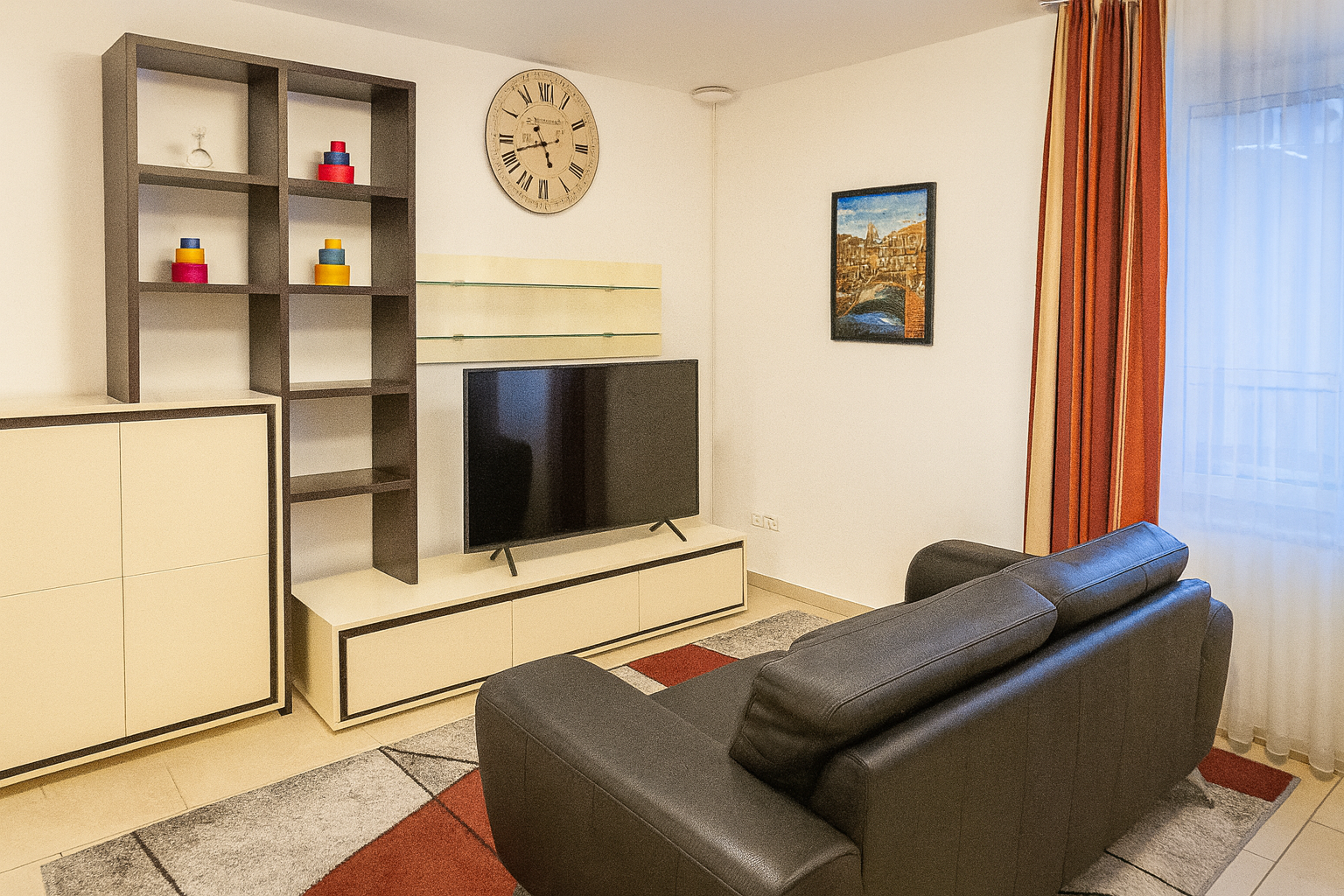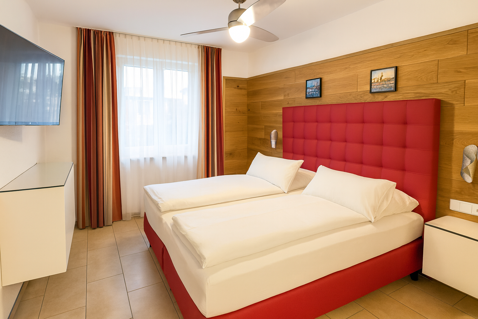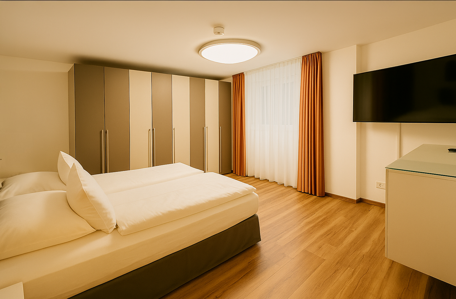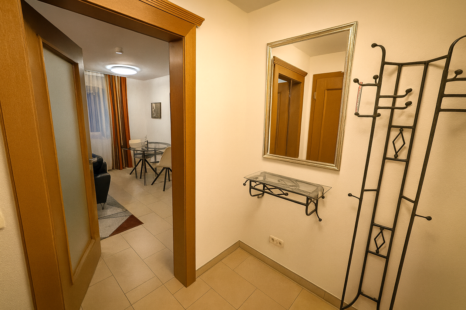 Auf 70 m² Wohnfläche erwartet Sie ein Apartment mit separatem Schlafzimmer, einem stilvoll eingerichteten Wohnzimmer, einer voll ausgestatteten Küche und einem modernen Bad. Dank der clever geplanten Raumaufteilung entsteht ein helles und einladendes Ambiente – perfekt für zwei Personen, die Wert auf Komfort legen.