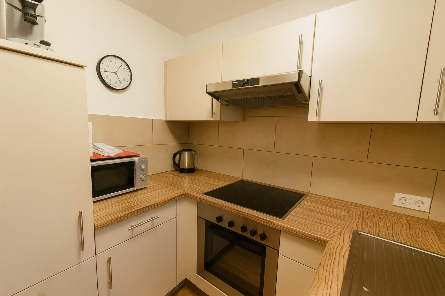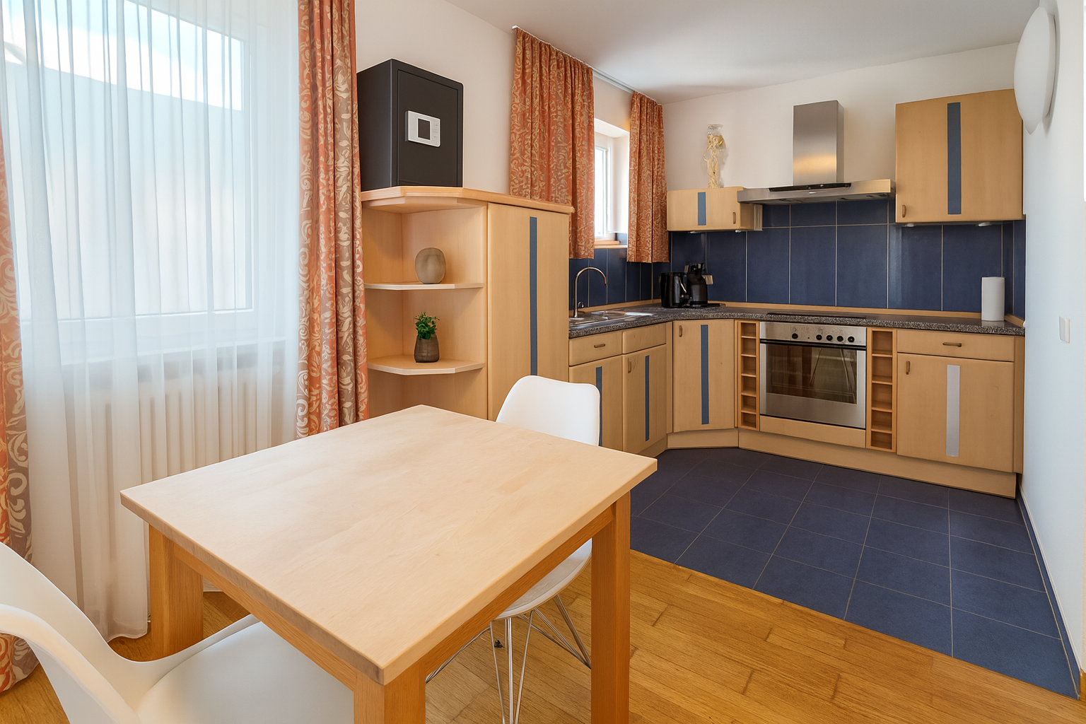 Da wir in unsere Apartments täglich modernisieren und renovieren, können die gezeigten Bilder vereinzelt vom aktuellen Zustand abweichen. Wir bitten um Verständnis, die Fotos spiegeln jedoch Größe und Schnitt der Apartments zuverlässig wieder.