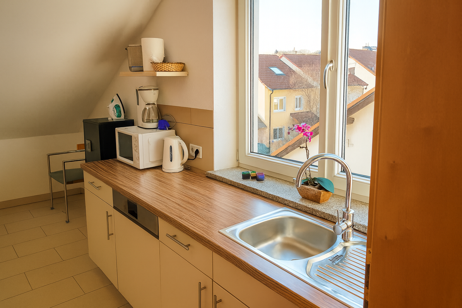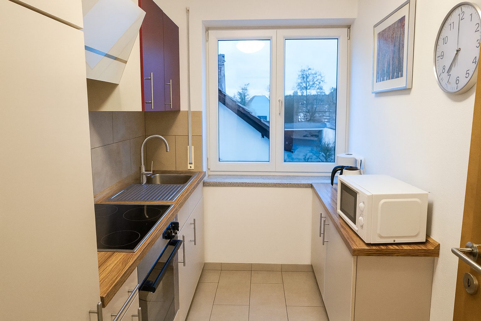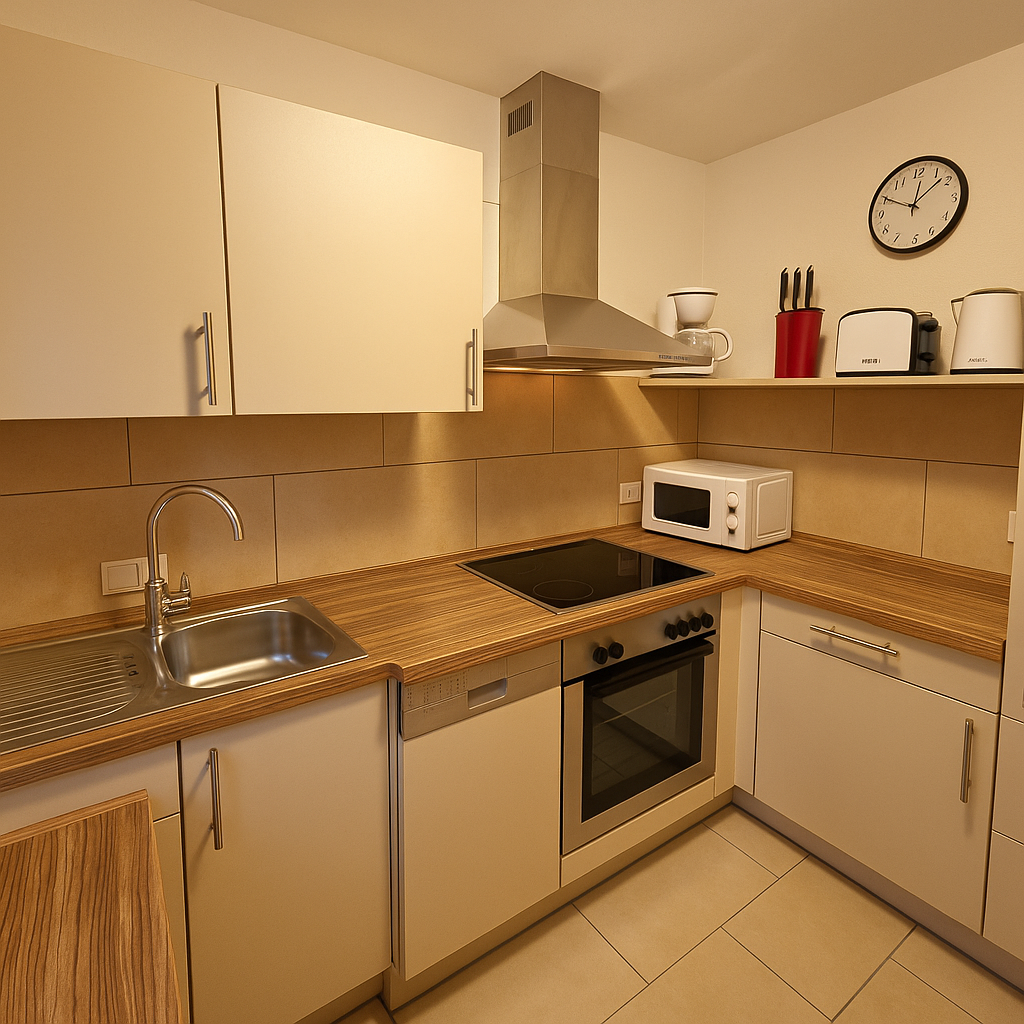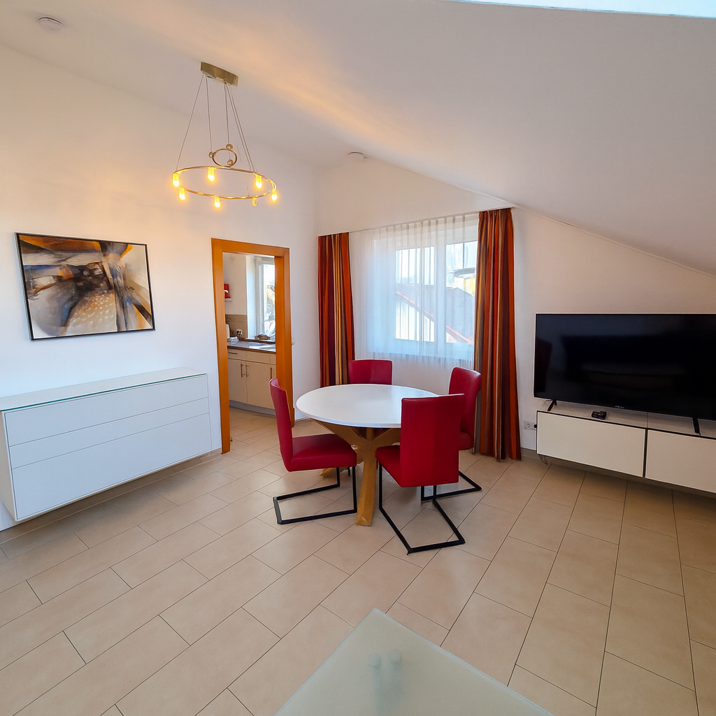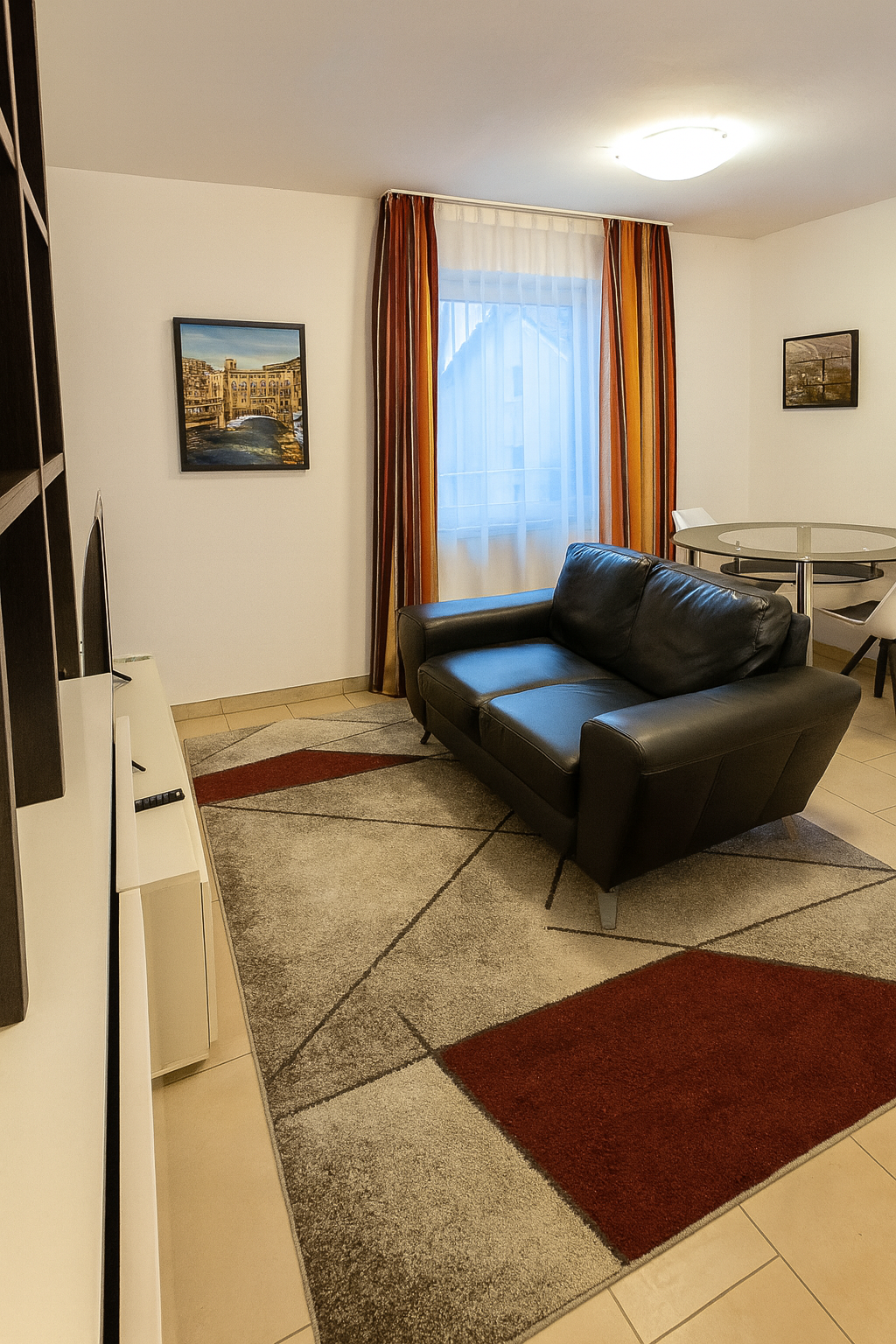 Das Apartment verfügt über ein Schlafzimmer, ein gemütliches Wohnzimmer, eine voll ausgestattete Küchenzeile sowie ein komfortables Bad. Auf 60 m² bietet es viel Platz und Komfort – ideal für zwei Personen, die einen entspannten Aufenthalt in Ingolstadt genießen möchten.