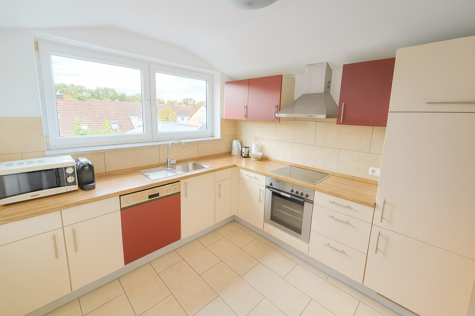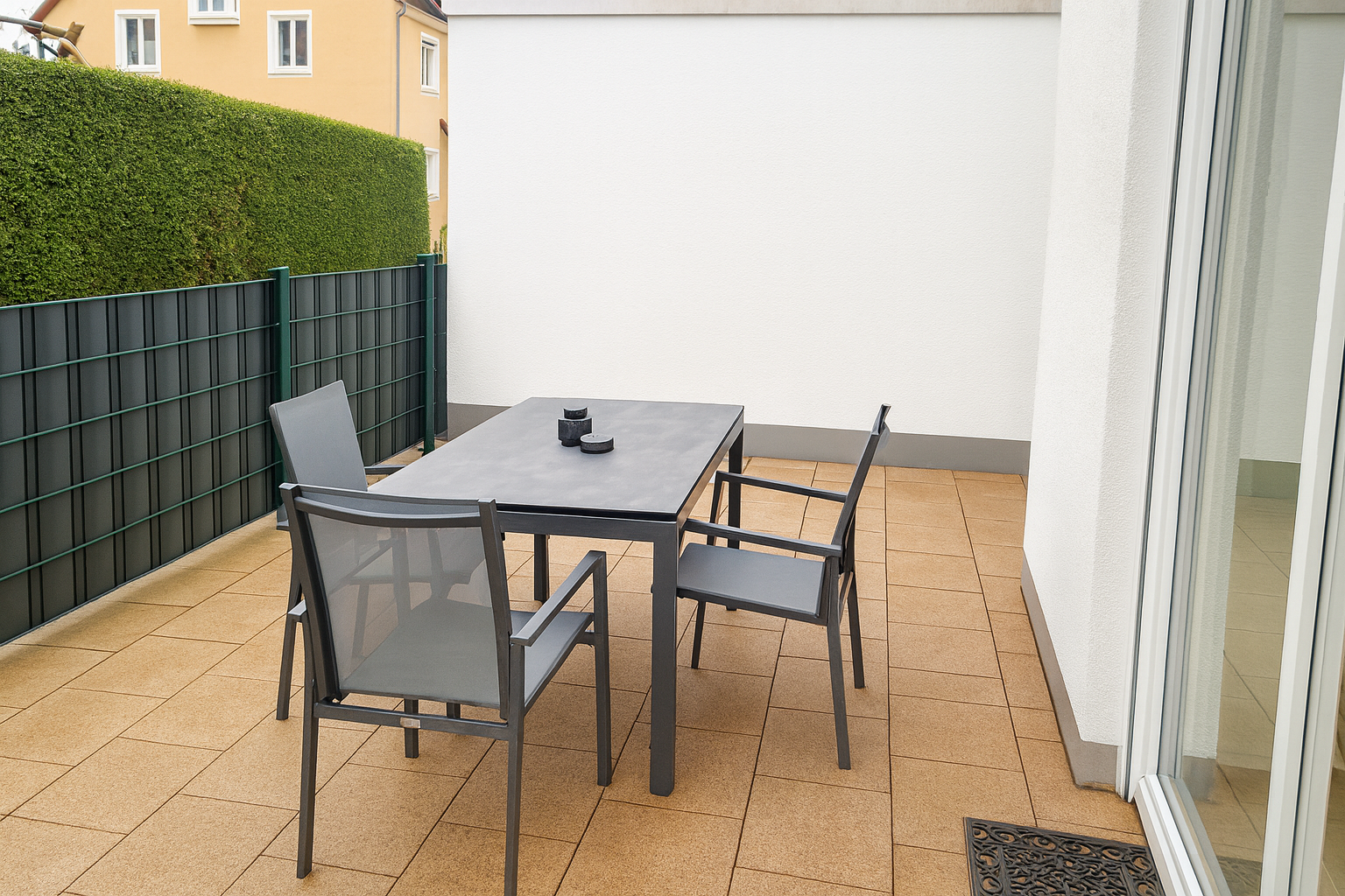 Dieses Apartment kombiniert 75 m² Komfort mit einem modernen Wohngefühl. Ein separates Schlafzimmer, ein stylisches Wohnzimmer, eine voll ausgestattete Küche und ein schickes Bad sorgen für alles, was man braucht. Auf der eigenen Terrasse lässt sich der Tag perfekt starten oder ausklingen – ideal für zwei Personen, die einen entspannten und angenehmen Aufenthalt in Ingolstadt suche