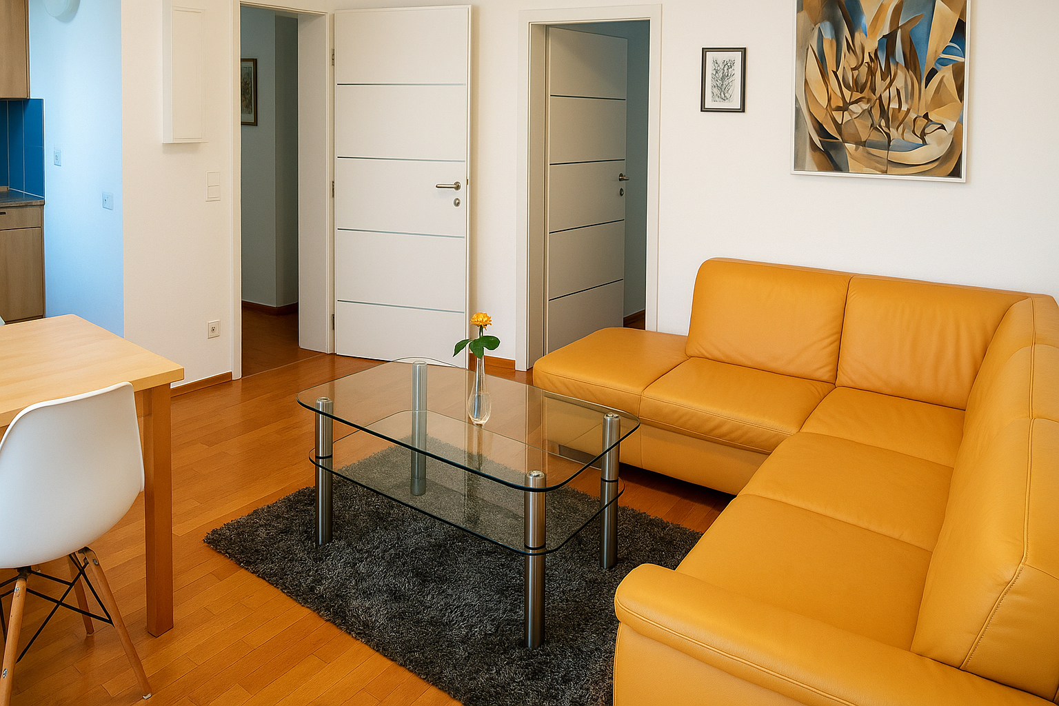 The apartment features a separate bedroom, a comfortably furnished living room, a fully equipped kitchen, and a spacious, comfortable bathroom. With 50 m² of well-designed living space, it offers a high level of comfort – ideal for two guests looking to enjoy a relaxing stay in Ingolstadt.