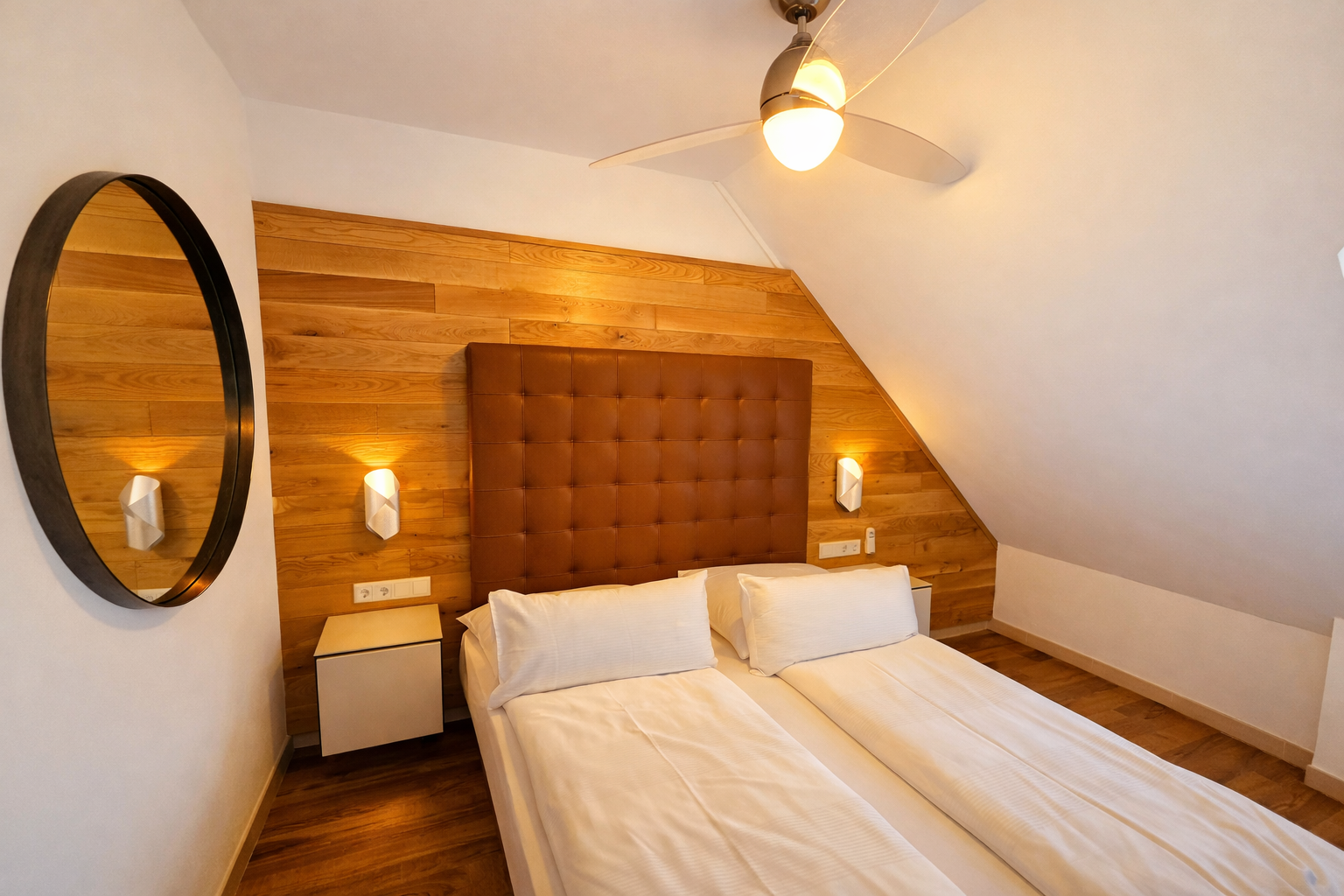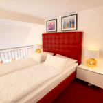 Das 55 m² große Apartment bietet ein separates Schlafzimmer, ein stilvoll eingerichtetes Wohnzimmer, eine voll ausgestattete Küche sowie ein großes, komfortables Bad. Der private Balkon erweitert den Wohnraum nach draußen und lädt zum entspannten Verweilen ein. Ein hochwertiges Wohnambiente – perfekt für zwei Personen.