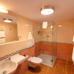 Das 70 m² große Apartment bietet ein separates Schlafzimmer, ein stilvoll eingerichtetes Wohnzimmer, eine voll ausgestattete Küche sowie zwei komfortable Bäder – eines mit Dusche und WC, das andere als praktisches Gäste-WC. Die private Terrasse erweitert den Wohnraum nach draußen und lädt zum Entspannen ein. Ideal für 2 Personen