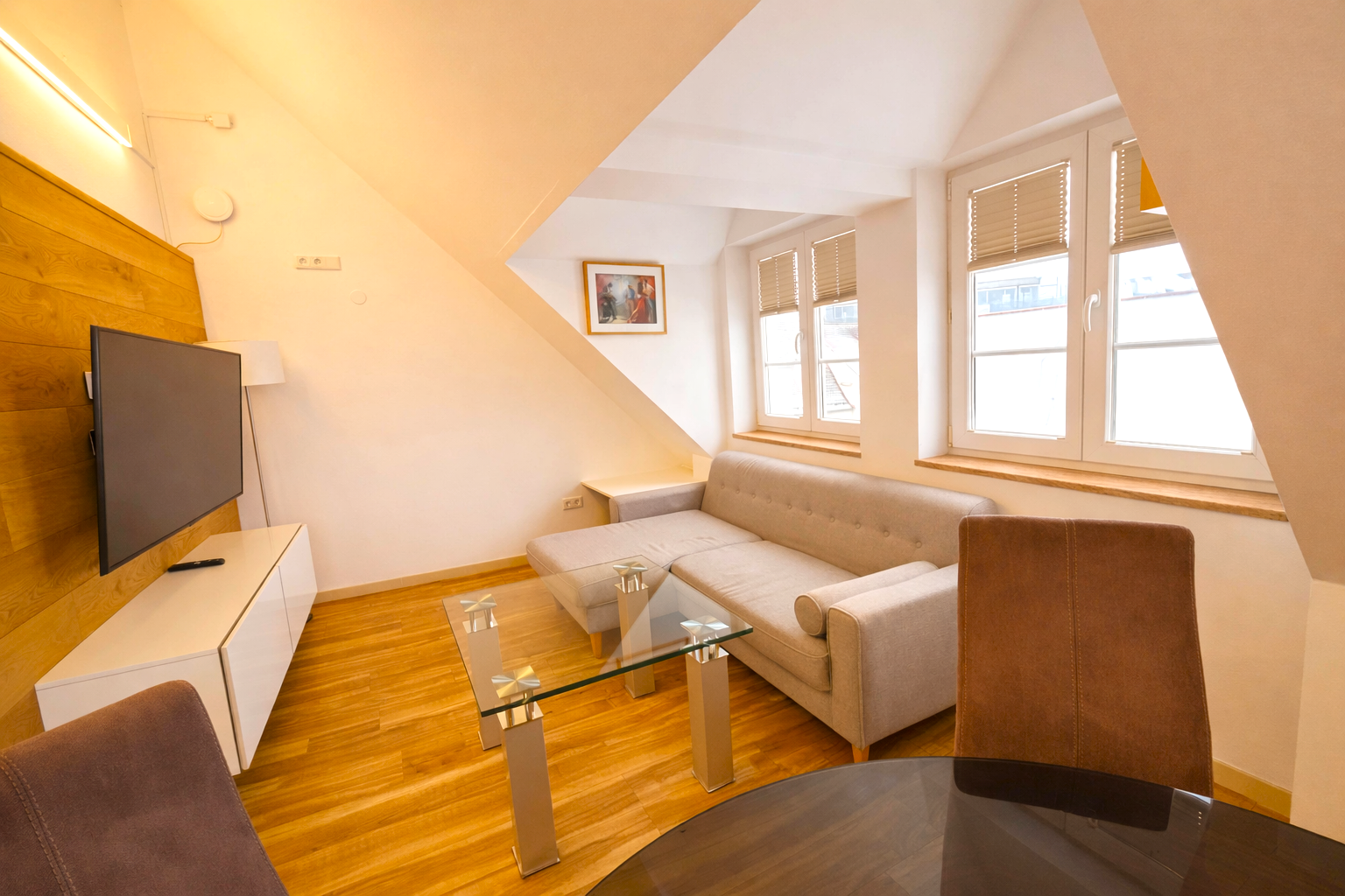 Da wir in unsere Apartments täglich modernisieren und renovieren, können die gezeigten Bilder vereinzelt vom aktuellen Zustand abweichen. Wir bitten um Verständnis, die Fotos spiegeln jedoch Größe und Schnitt der Apartments zuverlässig wieder.